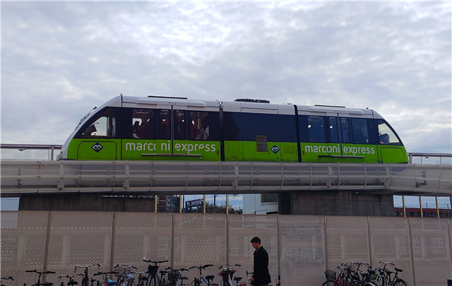 Automated monorail people mover on rubber tyres (Intamin P30/48) that connects the central train station of Bologna to its airport.