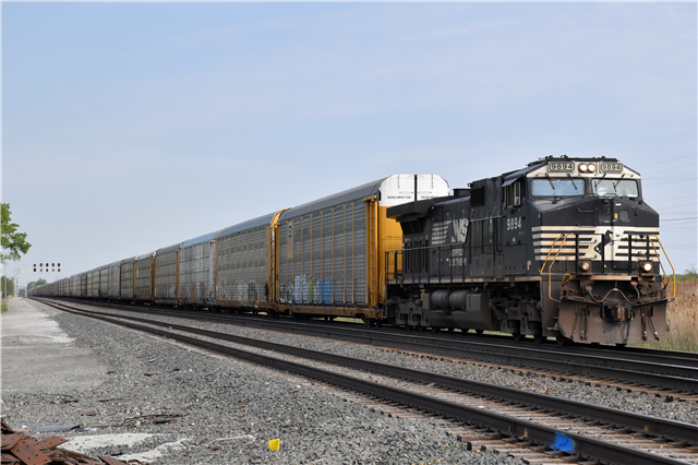 9894 leads an auto rack train through Pine Junction