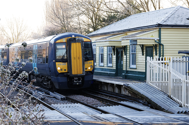 2T20 0903 Strood to Paddock Wood departs East Farleigh formed of 357305 on a very frosty January morning