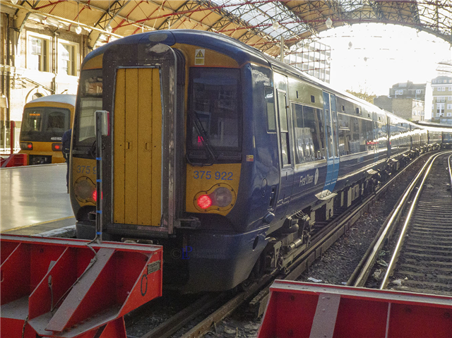 375922 sits on the stops at the rear of 2N44 Victoria to Ashford International