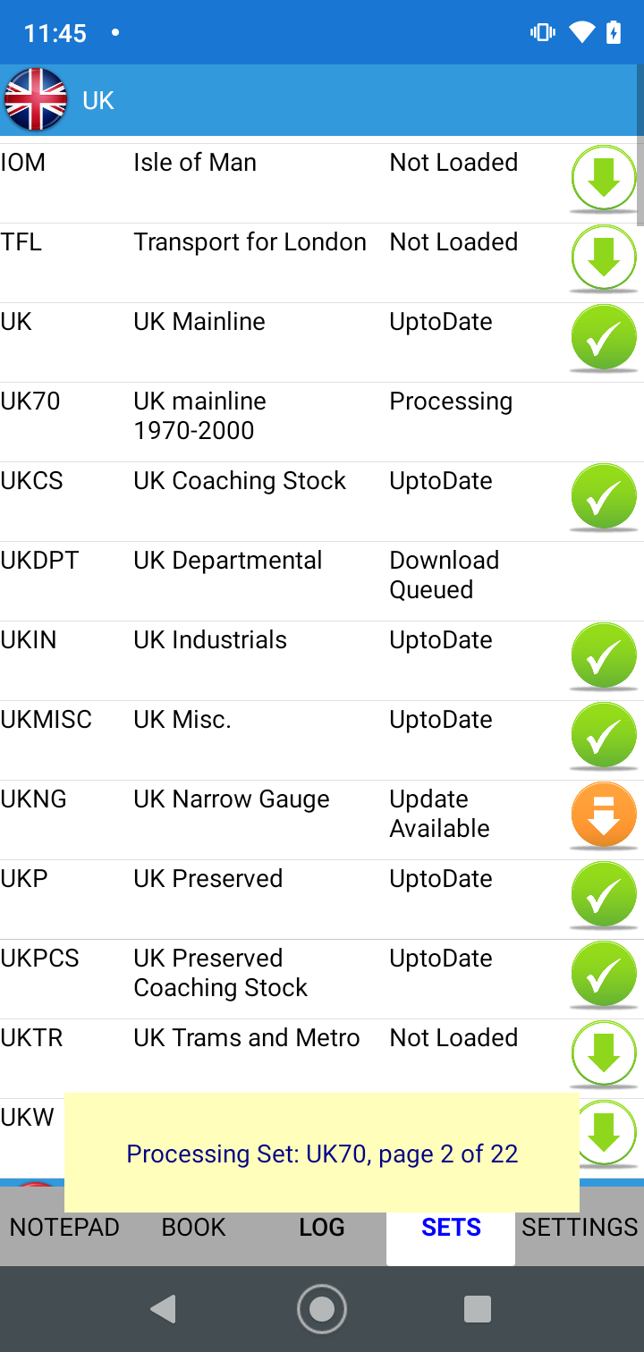 - Processing - the app is currently downloading or updating this set.